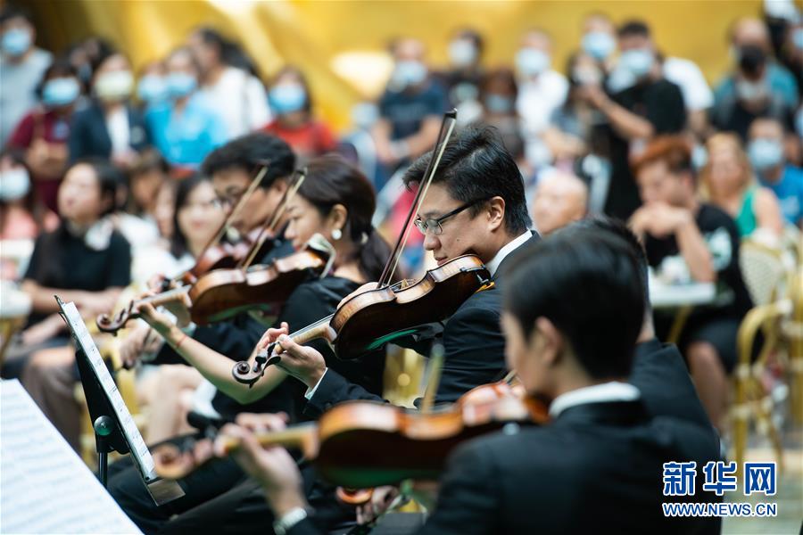 8月29日,澳门乐团在美狮美高梅演出。 当日,澳门乐团在美狮美高梅演奏音乐家贝多芬的第六交响曲《田园》,纪念贝多芬诞辰250周年。 新华社记者 张金加 摄