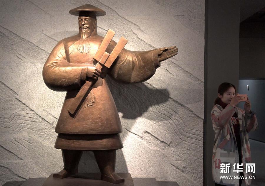 这是2019年10月16日在二里头夏都遗址博物馆内拍摄的大禹雕像。 新华社记者 李安 摄