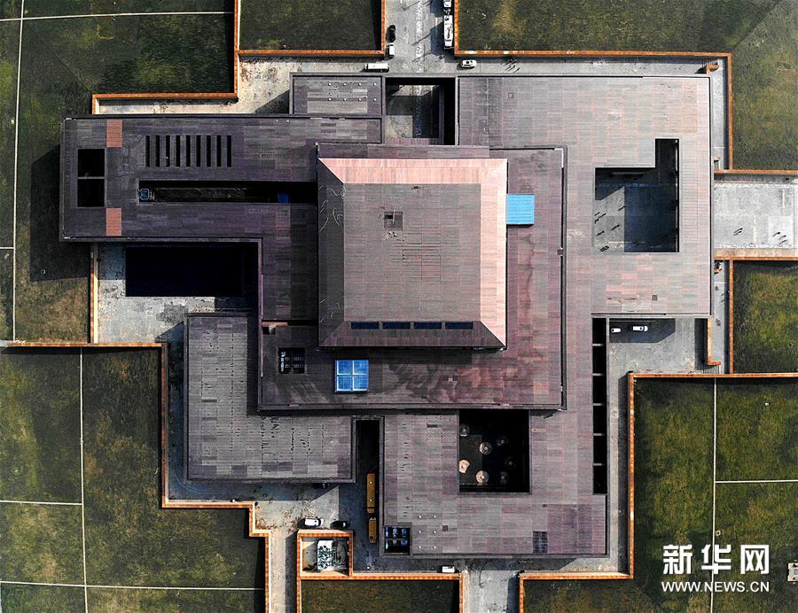 这是2019年10月19日在河南省偃师市拍摄的二里头夏都遗址博物馆(无人机照片)。 新华社记者 李安 摄