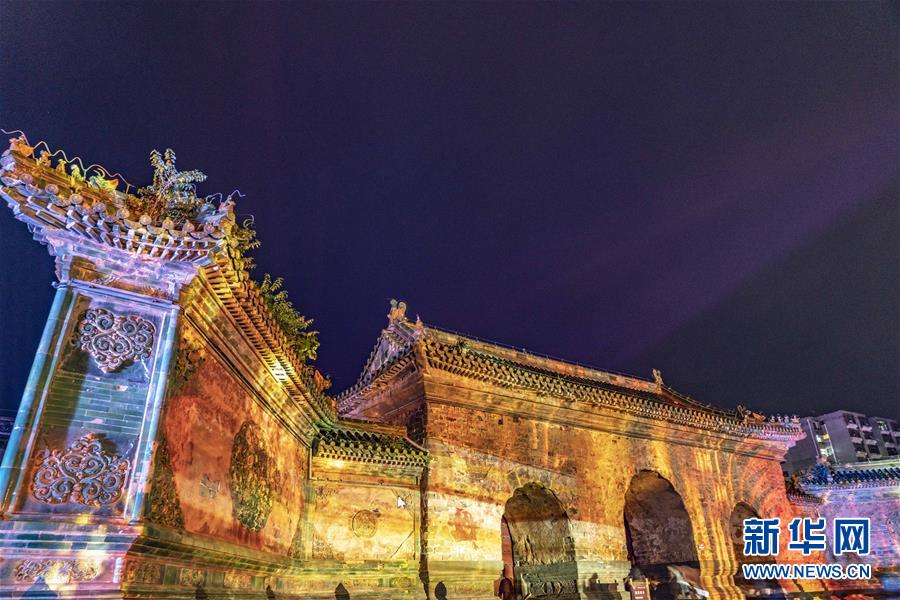 这是9月14日晚在湖北省武当山玉虚宫景区拍摄的光影秀。 大规模光影秀“玄岳之光”于近日在武当山玉虚宫开幕,古老的建筑与现代的声光电科技融合在一起,惊艳夜空。位于湖北省武当山景区的玉虚宫是武当山建筑群中最大的宫殿之一,始建于明永乐年间,规制谨严,院落重重。 新华社记者 杜华举 摄