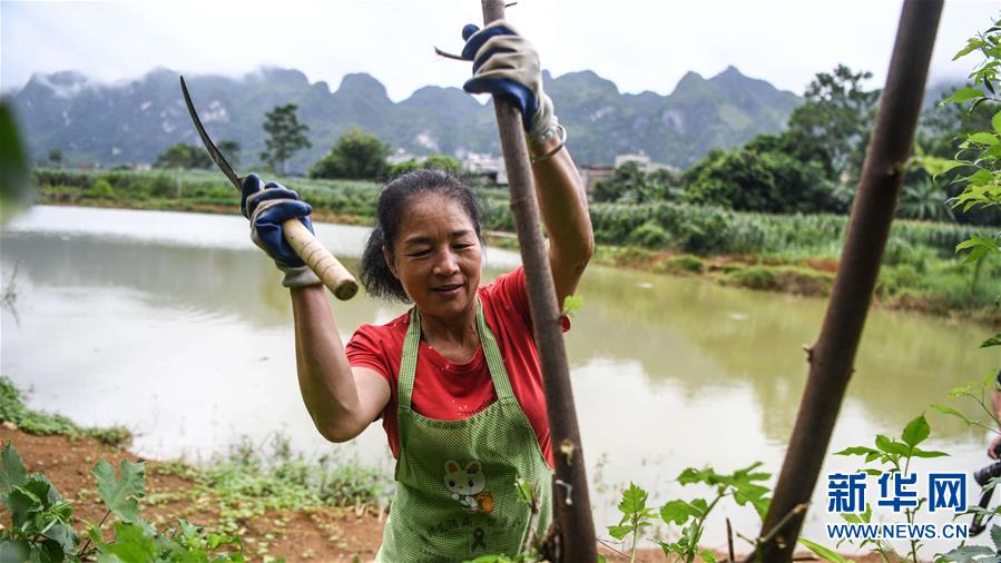 9月19日,广西大化瑶族自治县贡川乡贡川村农民韦爱新在砍伐自己种植的构树,以剥取树皮制作贡川纱纸。 广西大化瑶族自治县贡川乡贡川村群众保留着传统民间造纸工艺,以山区特有的构树皮、植物胶等为原料,加工制作贡川纱纸。 贡川纱纸因具有较高的韧性、吸水吸湿性、透气性等特点,远销港澳台及东南亚、欧洲、非洲等地区,其制作工艺在2007年入选广西壮族自治区非物质文化遗产名录。 新华社记者 张爱林 摄