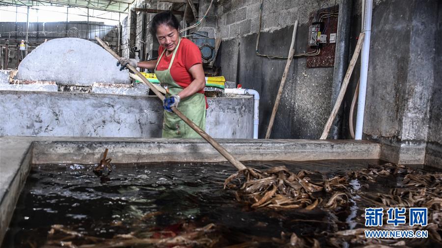9月19日,在广西大化瑶族自治县贡川乡贡川村的一家民间造纸作坊,村民在加工制作贡川纱纸的原料。 广西大化瑶族自治县贡川乡贡川村群众保留着传统民间造纸工艺,以山区特有的构树皮、植物胶等为原料,加工制作贡川纱纸。 贡川纱纸因具有较高的韧性、吸水吸湿性、透气性等特点,远销港澳台及东南亚、欧洲、非洲等地区,其制作工艺在2007年入选广西壮族自治区非物质文化遗产名录。 新华社记者 张爱林 摄