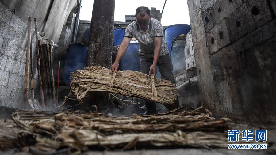 9月19日,在广西大化瑶族自治县贡川乡贡川村的一家民间造纸作坊,村民准备将制作贡川纱纸的原料进行蒸煮。 广西大化瑶族自治县贡川乡贡川村群众保留着传统民间造纸工艺,以山区特有的构树皮、植物胶等为原料,加工制作贡川纱纸。 贡川纱纸因具有较高的韧性、吸水吸湿性、透气性等特点,远销港澳台及东南亚、欧洲、非洲等地区,其制作工艺在2007年入选广西壮族自治区非物质文化遗产名录。 新华社记者 张爱林 摄