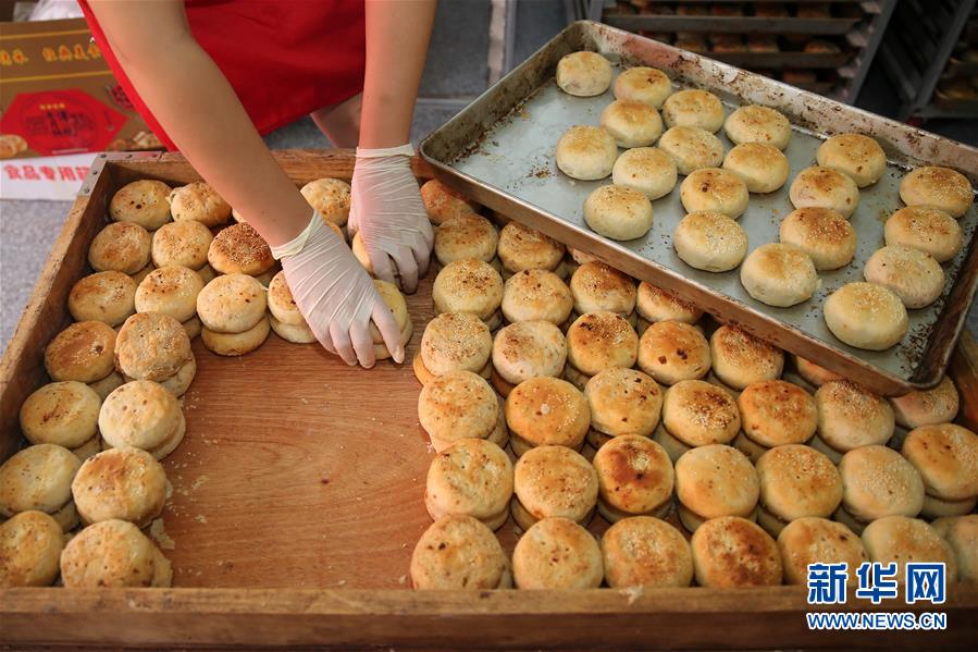 9月21日,在濉溪县临涣镇,工人摆放烘焙过的月饼让其自然冷却。 临近中秋佳节,安徽省淮北市濉溪县临涣古镇传统手工制作的香油月饼进入旺销季,凝聚着手工艺人匠心味道的香油月饼借助电商等渠道俏销各地。临涣镇是一个千年古镇,当地手工制作香油月饼历史悠久。月饼的馅料以花生、芝麻、瓜子、青红丝、香油、白砂糖等为主,通过多道工序加工烘焙而成。 新华社发(万善朝 摄)
