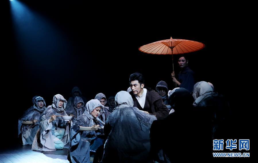 9月22日晚,成都艺术剧院的演员在表演舞剧《努力餐》。 当日,第十二届中国舞蹈“荷花奖”舞剧评奖演出剧目之一《努力餐》在上海国际舞蹈中心大剧场上演。从9月16日开始,8部舞剧在上海展演,角逐“荷花奖”。 新华社记者 方喆 摄