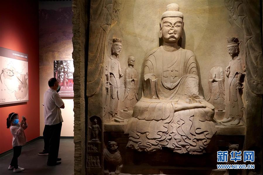 9月24日,参观者在河南博物院主展馆内观看展品。新华社记者 李安 摄