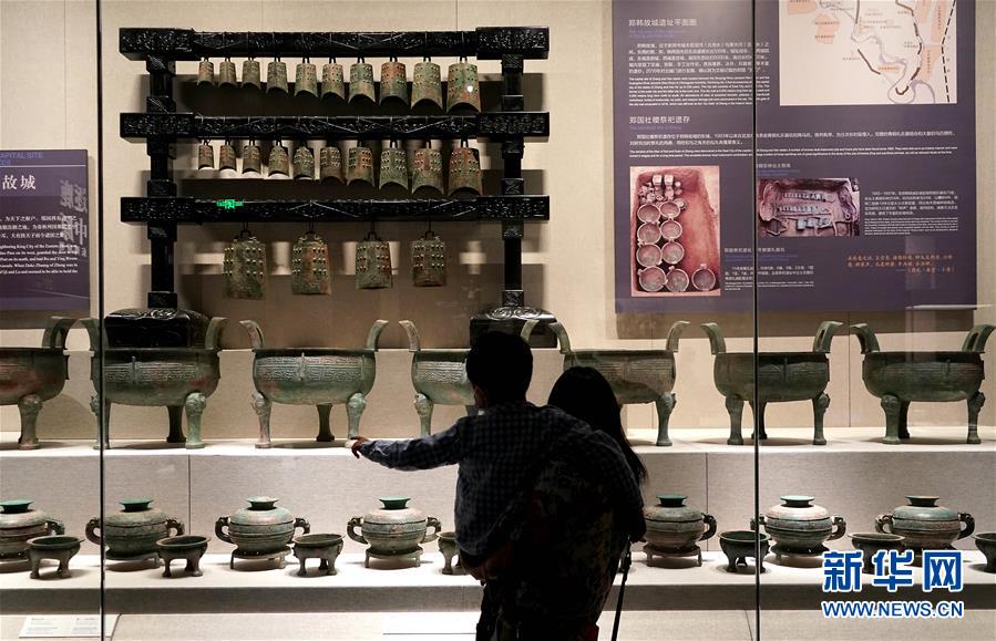 9月24日,参观者在河南博物院主展馆内观看展品。新华社记者 李安 摄