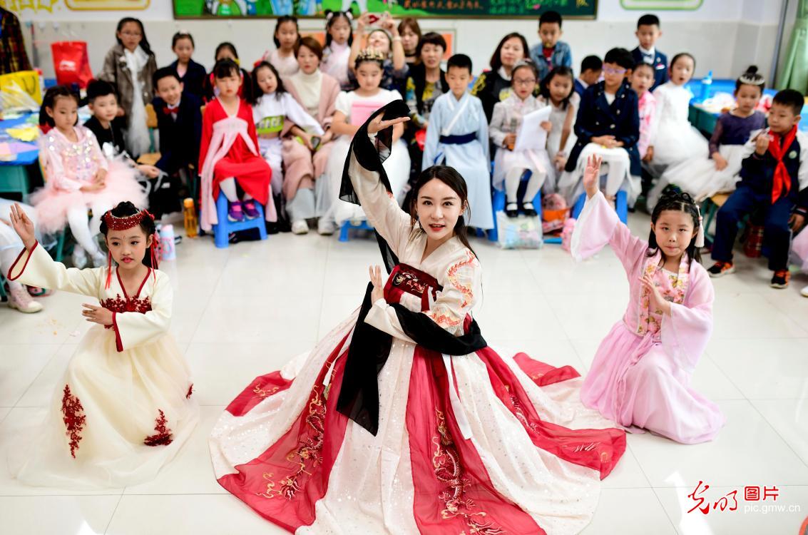 2020年9月28日,内蒙古呼和浩特市赛罕区敕勒川绿地小学"校园灯会迎佳节"主题活动启幕。全校3000余名学生、教师和家长将在赏花灯、猜灯谜、制月饼等系列活动中体验中秋节传统文化。(王正摄/光明图片)