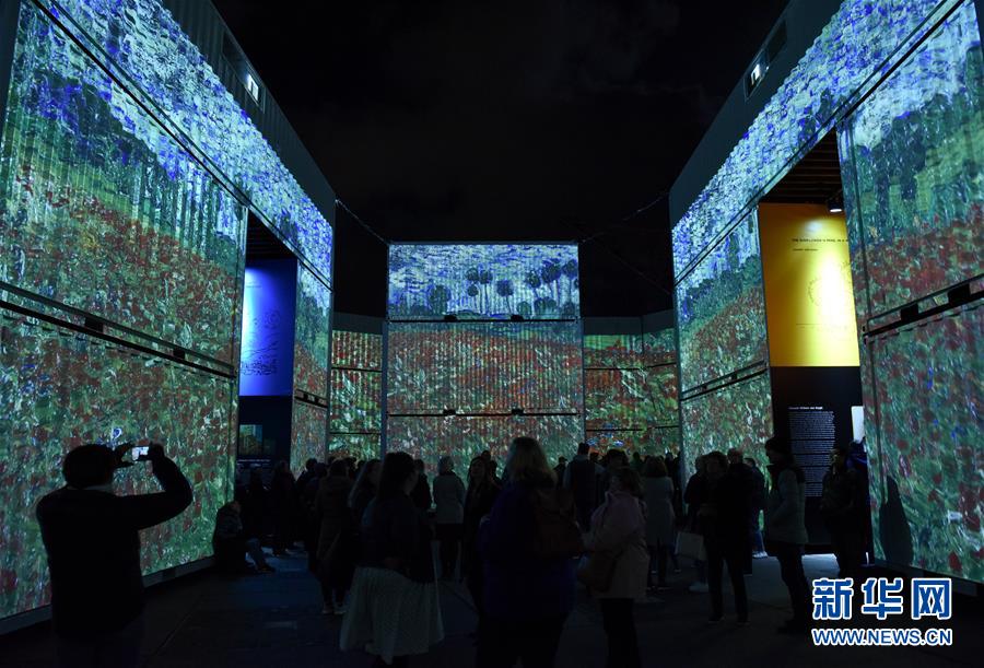 10月1日,在新西兰首都惠灵顿,人们参观梵高沉浸式画展。新华社记者 郭磊 摄