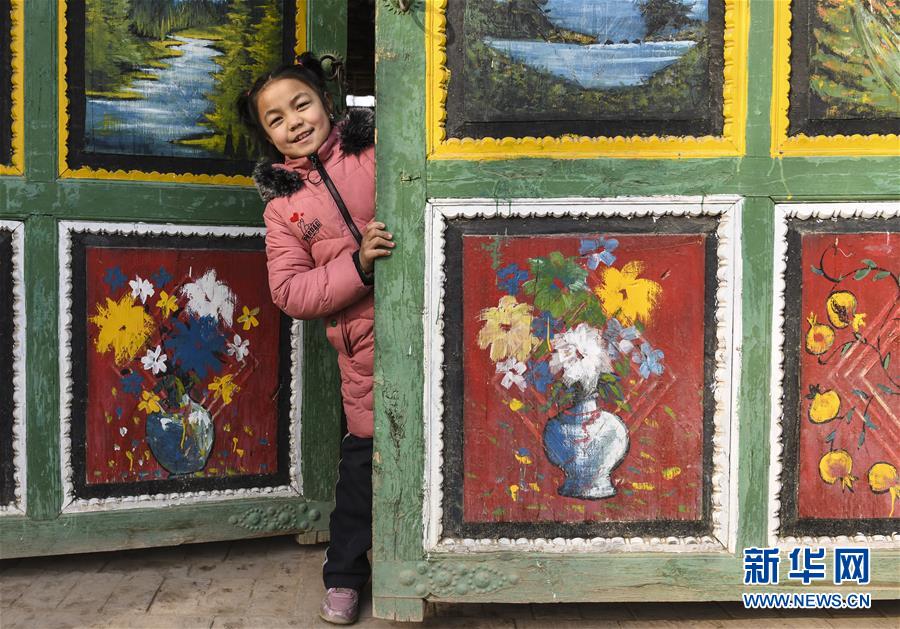 新疆鄯善县树柏沟村因群众素有装饰自家院门的传统而被称为“彩门村”,当地村民将彩绘农民画运用到大门的装饰上,为村里发展乡村旅游增色不少(2020年1月11日摄)。
