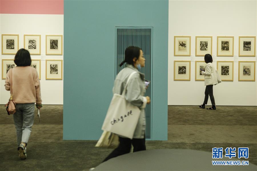 10月10日,参观者在马克·夏加尔中国首展上观展。 从10月9日起,马克·夏加尔中国首展在中央美术学院美术馆廊坊馆开始展出,展览共展出155件作品,涵盖油画、水彩画、水粉画、坦培拉、蚀刻版画等艺术形式。展览横跨1925年到1981年将近60年的时空,展现艺术家贯穿其一生的永恒主题——爱、乡愁以及深植于民族特色的信仰。展览将持续至2021年1月18日。 马克·夏加尔是白俄罗斯裔法国画家、版画家和设计师。他历经立体派、超现实主义等现代艺术流派的实践与洗礼,发展出独特的个人绘画风格,在现代绘画史上占有重要的地位。 新华社记者 张玉薇 摄