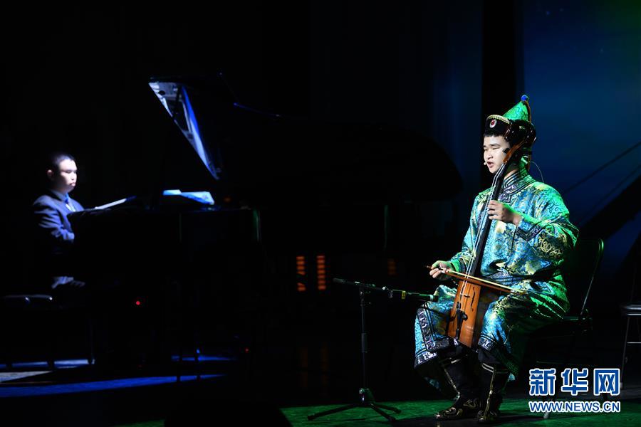 10月12日,盲人音乐家龚朴(右)在音乐会上演奏马头琴。 10月12日,由中国残联主办的“看见明天”国际盲人节公益音乐会在北京天桥艺术中心举行。整场演出分为4个乐章,来自中国残疾人艺术团以及中国盲协音乐与艺术工作委员会的30余位盲人音乐家表演了美声、民族、流行等不同风格的声乐作品和二胡、钢琴、马头琴等乐器演奏,内容精彩纷呈。 新华社记者金良快摄