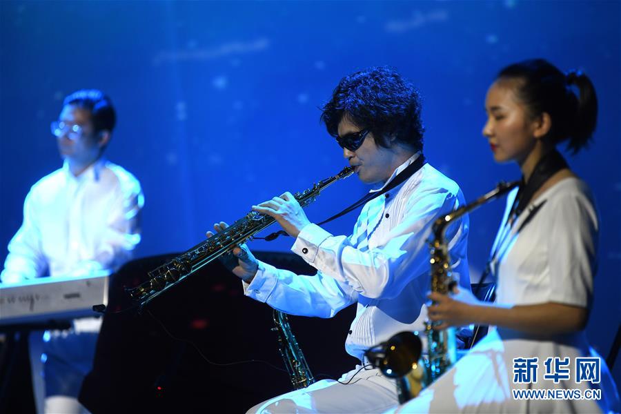 10月12日,盲人音乐家在音乐会上演奏。 10月12日,由中国残联主办的“看见明天”国际盲人节公益音乐会在北京天桥艺术中心举行。整场演出分为4个乐章,来自中国残疾人艺术团以及中国盲协音乐与艺术工作委员会的30余位盲人音乐家表演了美声、民族、流行等不同风格的声乐作品和二胡、钢琴、马头琴等乐器演奏,内容精彩纷呈。 新华社记者金良快摄