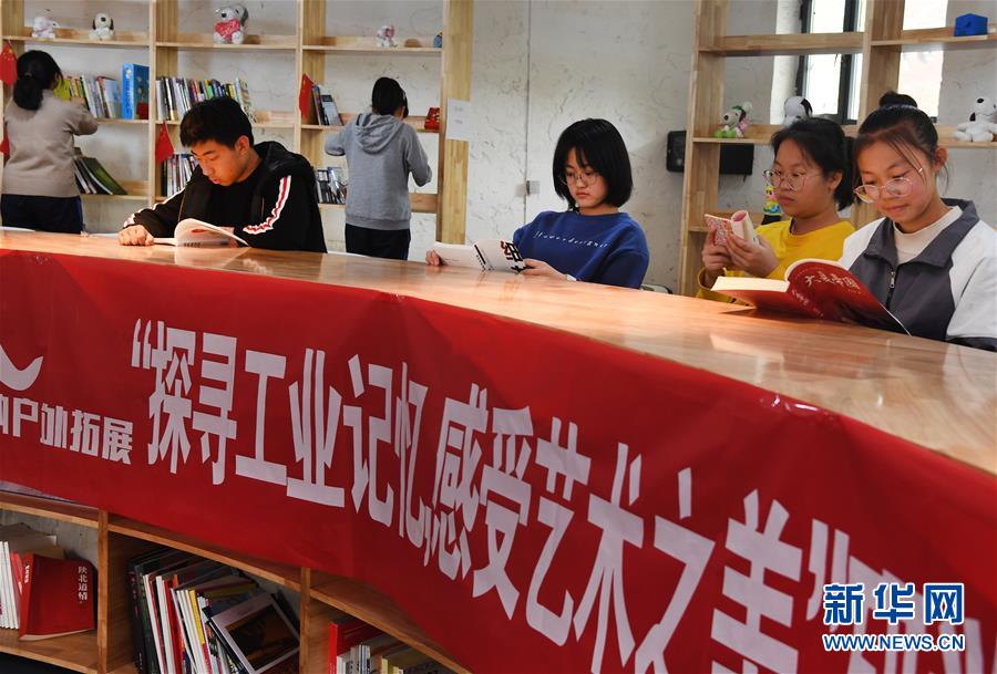 10月19日,游客在中能文创园书吧阅读。这里曾是煤矿工人升井后的浴池。 新华社记者 陶明 摄