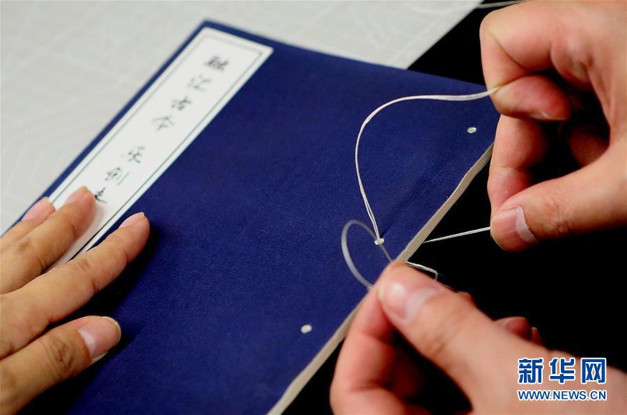 10月21日,古籍修复体验者在体验上海市非遗技艺“古籍修复”中的“穿线”工序。 当日,主题为“融汇古今,乐创未来——非遗技艺体验课”公益活动在上海图书馆举行,参加活动的体验者和古籍文献修复师一起在“古籍修复”和“碑刻传拓及拓片装裱”两项非遗技艺的实践中,体会优秀传统文化的源远流长。 新华社记者 陈飞 摄