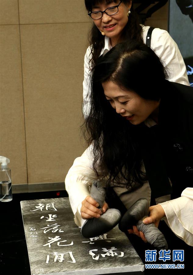 10月21日,古籍修复体验者在体验“碑刻传拓”。 当日,主题为“融汇古今,乐创未来——非遗技艺体验课”公益活动在上海图书馆举行,参加活动的体验者和古籍文献修复师一起在“古籍修复”和“碑刻传拓及拓片装裱”两项非遗技艺的实践中,体会优秀传统文化的源远流长。 新华社记者 陈飞 摄