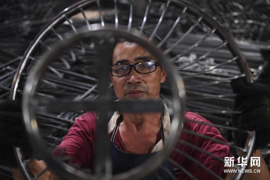 10月27日,在福建省泉州市安溪县一家藤铁工艺企业,工人加工出口藤铁工艺品。新华社记者 宋为伟 摄