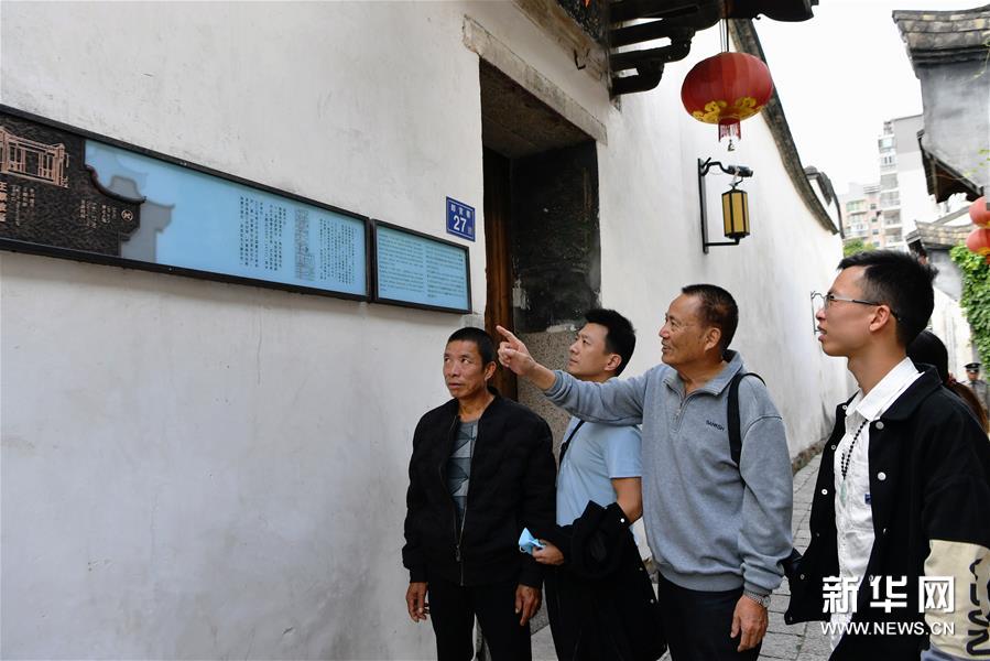 10月27日,在三坊七巷,林振寿(左三)给外来游客义务讲解古厝文化。新华社记者 魏培全 摄