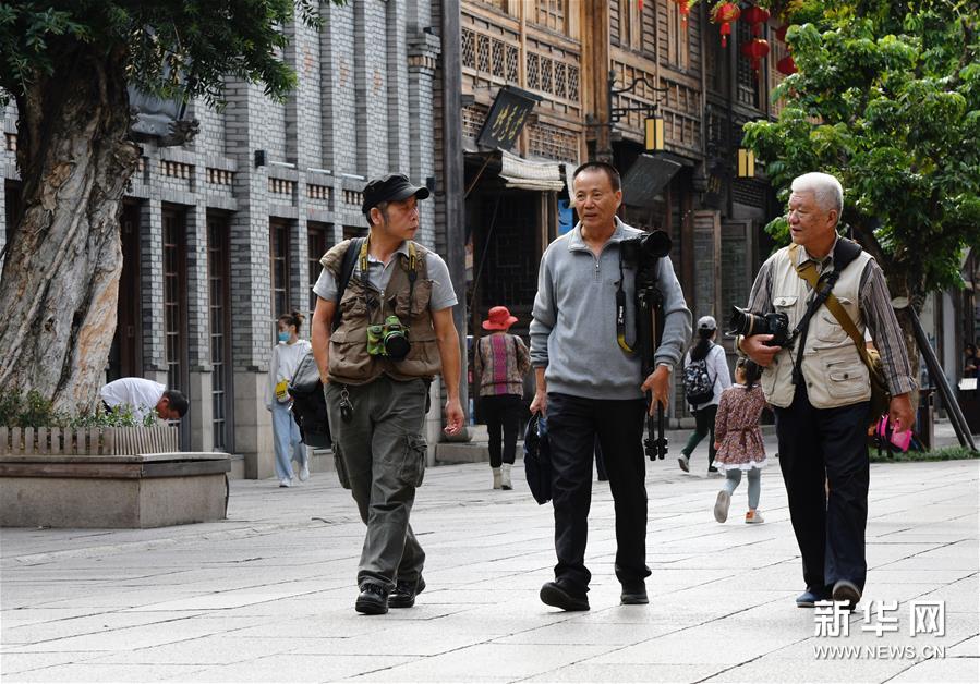 10月27日,林振寿(中)与摄友们穿行在三坊七巷。新华社记者 魏培全 摄