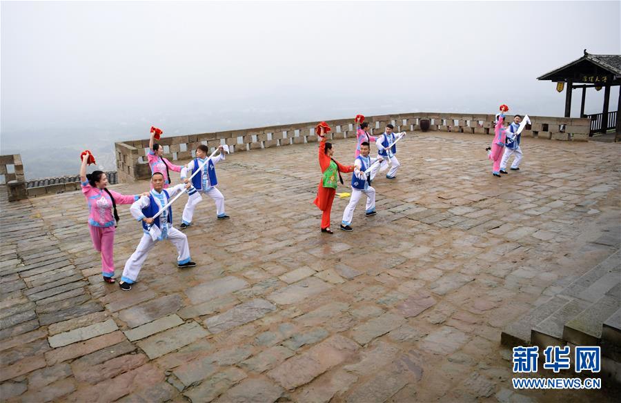 10月28日,在重庆市梁平区滑石古寨景区,表演者在表演国家级非遗项目“梁山灯戏”。 重庆市梁平区是中国民间文化艺术之乡,非遗文化底蕴浓厚,共有非物质文化遗产90项,其中包括梁山灯戏、梁平竹帘、梁平木版年画、梁平癞子锣鼓、梁平抬儿调等5项国家级非遗项目,以及礼让草把龙、梁平土法造纸技艺、铜乐锻造技艺等21项市级非遗项目。 新华社记者 唐奕 摄