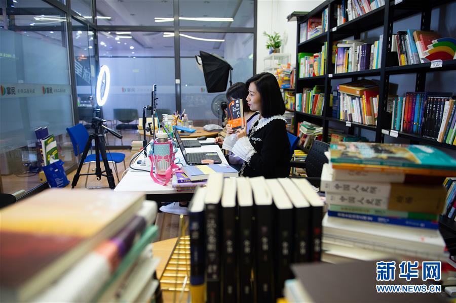 在位于北京市朝阳区的掌阅科技股份有限公司内,一名主播在进行直播读书(10月27日摄)。 新华社记者 陈钟昊 摄