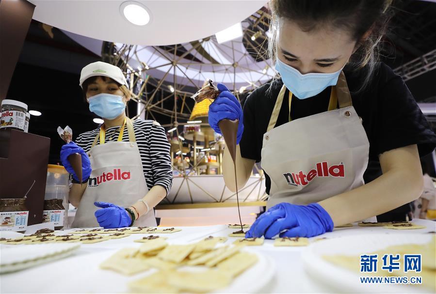 11月5日,工作人员在费列罗展台制作巧克力甜品。在第三届中国国际进口博览会食品及农产品展区,来自全球的各种美食既吸引眼球,又满足味蕾。 新华社记者 方喆 摄