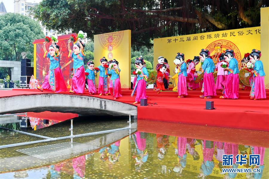 第十三届闽台陈靖姑民俗文化旅游节开幕式现场的文艺表演(11月7日摄)。 当日,第十三届闽台陈靖姑民俗文化旅游节在陈靖姑出生地福州仓山开幕。本届文化节将举办一系列活动,旨在展现陈靖姑文化内涵,进一步促进闽台两地和海丝沿线各国的文化交流。陈靖姑被老百姓尊为“妇幼保护女神”。2008年,陈靖姑信仰习俗已被列为国家级非物质文化遗产。 新华社记者 林善传 摄