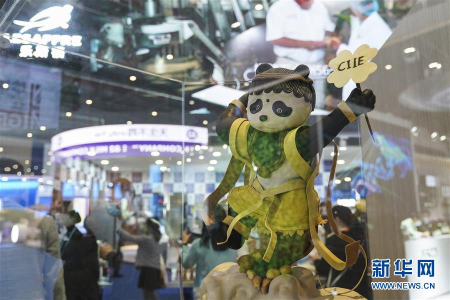 11月8日在进博会食品及农产品展区乐斯福展台展出的艺术面包“敦煌熊猫”。 第三届中国国际进口博览会上中外文化汇聚,这一全球贸易盛会同时成为了文化交流平台。 新华社记者 张豪夫 摄