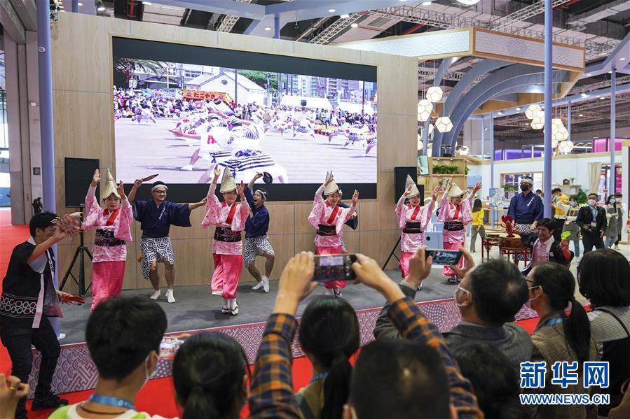 11月8日,观众在进博会消费品展区观看日本阿波舞表演。 第三届中国国际进口博览会上中外文化汇聚,这一全球贸易盛会同时成为了文化交流平台。 新华社记者 张豪夫 摄