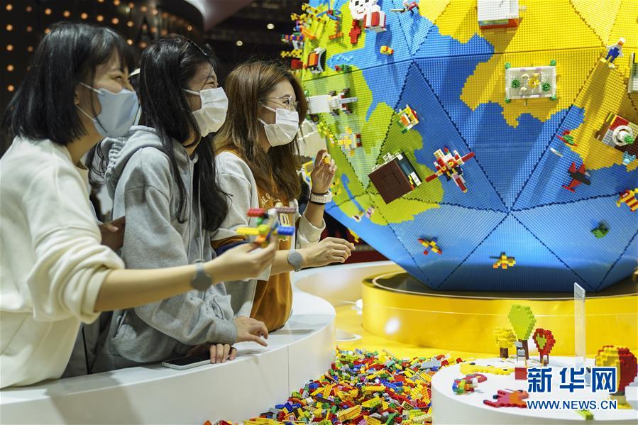 11月8日,观众在进博会消费品展区乐高展台体验乐高玩具。 第三届中国国际进口博览会上中外文化汇聚,这一全球贸易盛会同时成为了文化交流平台。 新华社记者 张豪夫 摄