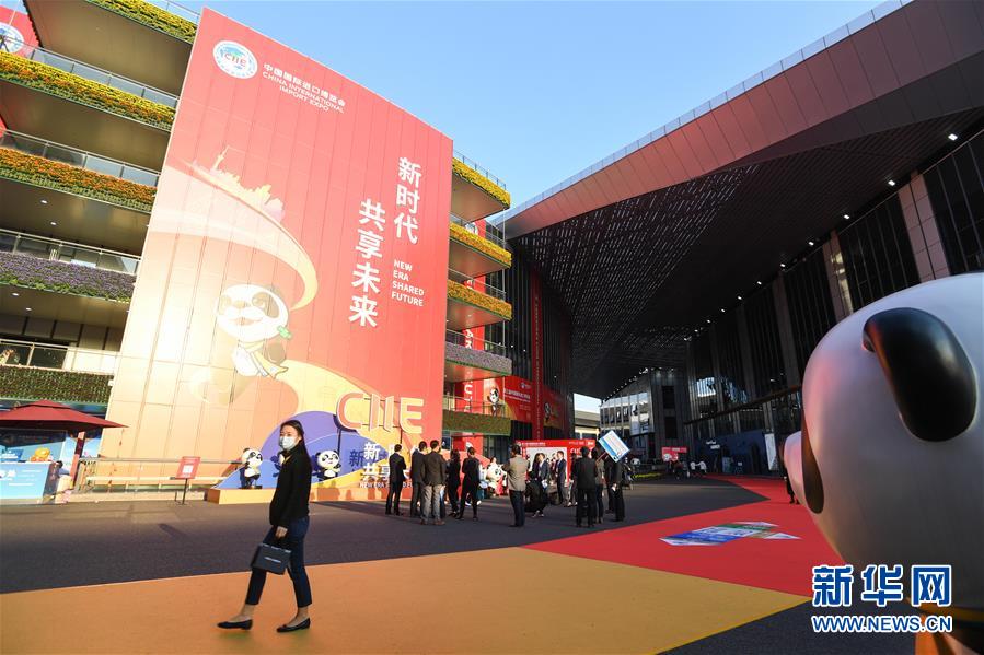 11月10日拍摄的国家会展中心(上海)一处进博会主题装饰。 当日,第三届中国国际进口博览会在上海落下帷幕。 新华社记者 李任滋 摄