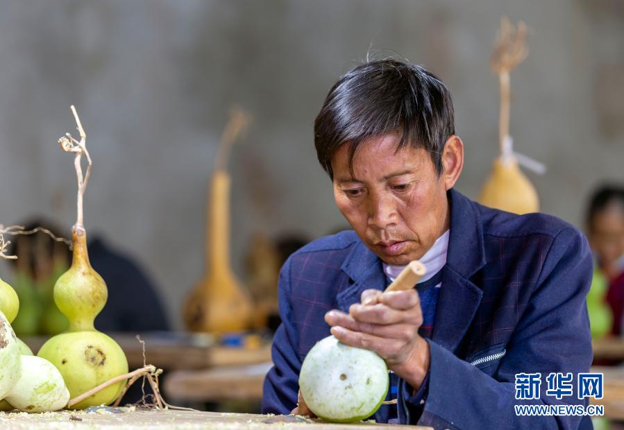 眼下,贵州省毕节市黔西县杜鹃街道岔白社区民俗葫芦烙画车间内一片繁忙,在家门口就业的村民忙着制作民俗葫芦烙画,赶制订单供应市场。