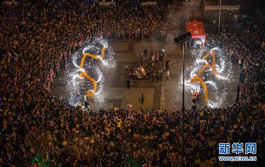 11月14日,在北川县禹王广场,当地群众舞龙欢庆羌历新年。 当日,以“幸福羌年 五彩北川”为主题的2020羌历新年系列活动在四川省北川羌族自治县开幕。当地羌族群众身着盛装,把羌族民俗节庆礼仪与歌舞表演相结合,以文艺汇演、沙朗舞展演、篝火晚会等方式,庆祝羌历新年。 新华社记者 江宏景 摄