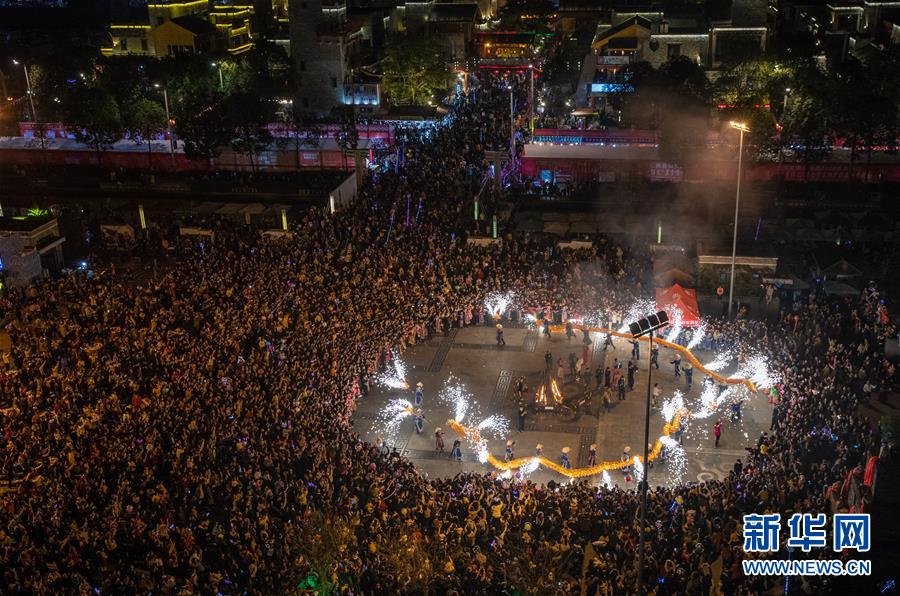 11月14日,在北川县禹王广场,当地群众舞龙欢庆羌历新年。 当日,以“幸福羌年 五彩北川”为主题的2020羌历新年系列活动在四川省北川羌族自治县开幕。当地羌族群众身着盛装,把羌族民俗节庆礼仪与歌舞表演相结合,以文艺汇演、沙朗舞展演、篝火晚会等方式,庆祝羌历新年。 新华社记者 江宏景 摄
