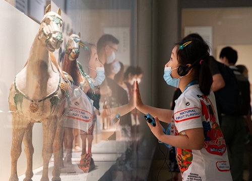 暑假期间,许多家长带着孩子走进南京博物院参观各类展览,让孩子们在游览中了解中国传统文化,感受历史的魅力,丰富假期生活。