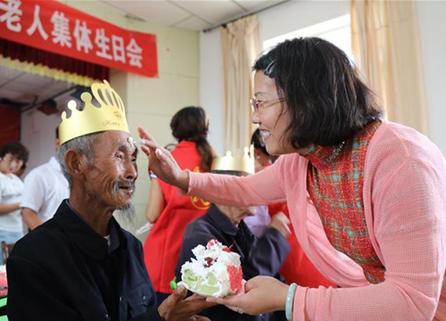 7月11日,在甘肃省金昌市金川区双湾镇新粮地村,孝老敬亲突出个人王艳梅在“道德银行”内兑换奖励物品。