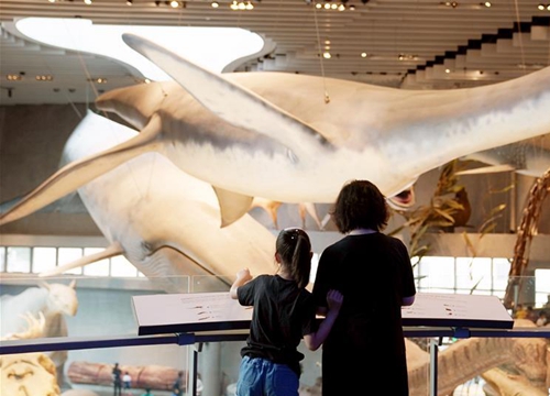 7月15日,小朋友和家长在上海自然博物馆参观。 进入暑假,不少家长带着孩子到上海自然博物馆参观。