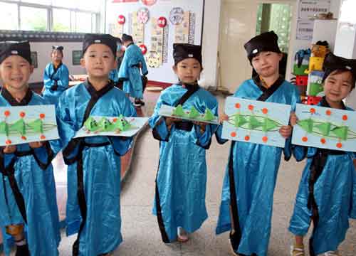 2020年6月22日,江苏省苏州市虎丘中心幼儿园举行“传统习俗迎端午”主题活动,小朋友们在老师的指导下通过做香包、折龙舟等活动,感受传统民俗文化。