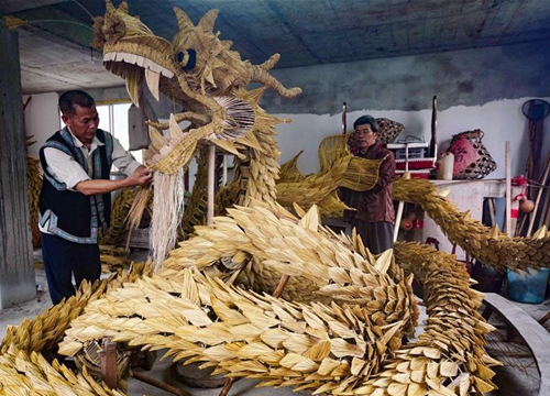 端午节临近,在广西龙胜各族自治县平等镇广南侗寨,侗族同胞赶制草龙迎接传统佳节。