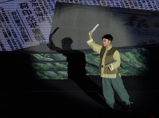 新编晋剧《战地黄花》在山西平遥演出。该剧取材于抗战时期新闻战线的记者们正义发声、流血牺牲的英雄事迹。
