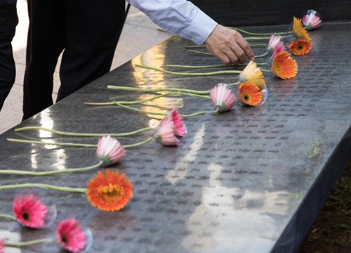 10月25日,台湾各界人士在台北中山堂“抗日战争胜利暨台湾光复纪念碑”前共同缅怀抗日先烈。