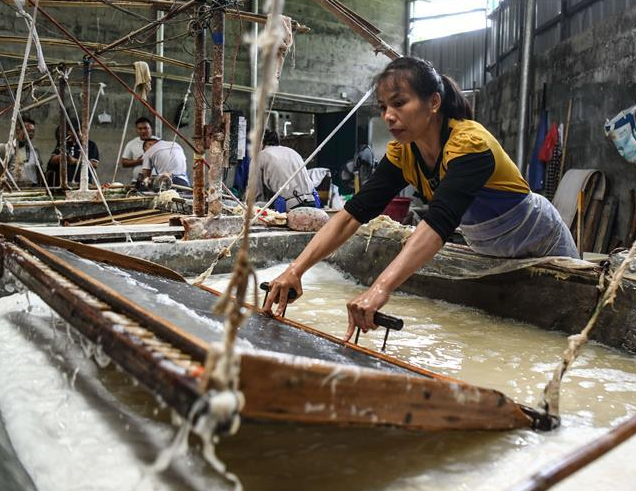 广西大化瑶族自治县贡川乡贡川村群众保留着传统民间造纸工艺,以山区特有的构树皮、植物胶等为原料,加工制作贡川纱纸。