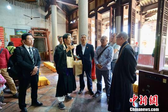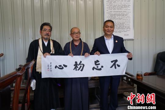 中新网福建福清4月19日电 (郑松波陈芝宽)日本黄檗宗西圆寺住持、日本著名禅画僧内藤香林一行19日到访福建福清黄檗山万福寺寻根拜祖。