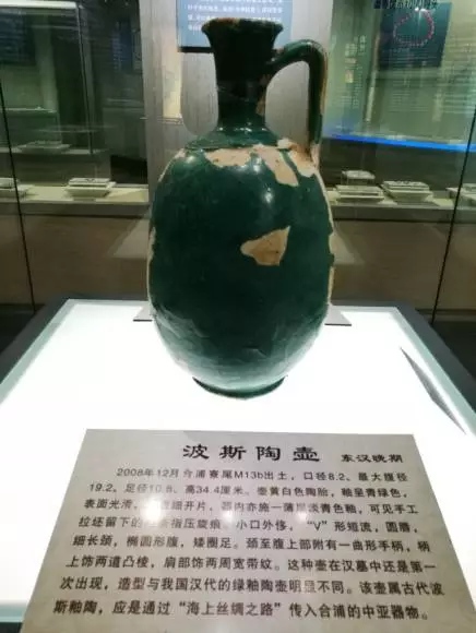 这件东汉晚期的波斯陶壶就是习近平参观的众多展品之一。该壶属古代波斯釉陶,应是通过“海上丝绸之路”传入合浦的中亚器物。