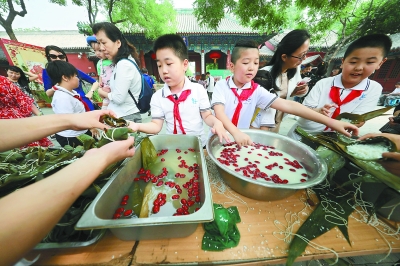 以“过五彩端午,享美好生活”为主题的文化活动在北京民俗博物馆举行。包粽子、画王老虎、系长命缕、点朱砂、祈福等节令习俗体验,吸引了不少孩子参加。