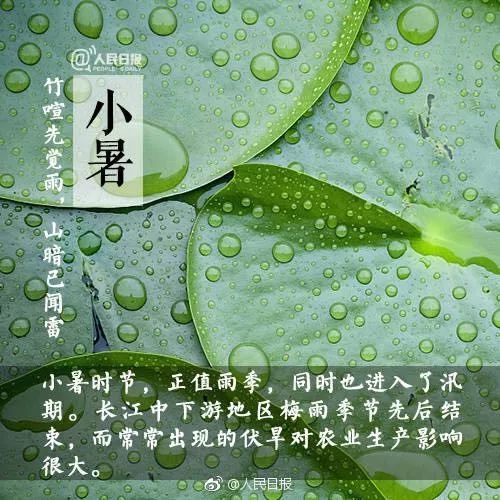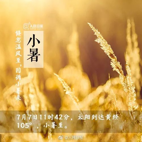 小暑是农历二十四节气的第十一个节气,夏天的第五个节气,表示季夏时节的正式开始。暑,表示炎热的意思。小暑为小热,还不十分热,正如谚语所说“小暑不算热,大暑三伏天”。