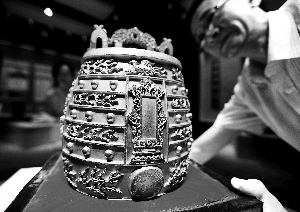 ▲被掠走近百年后,一枚明代鎏金编钟回归天坛。