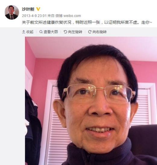 沙叶新曾在微博上传自拍照 图片来源:沙叶新微博截图