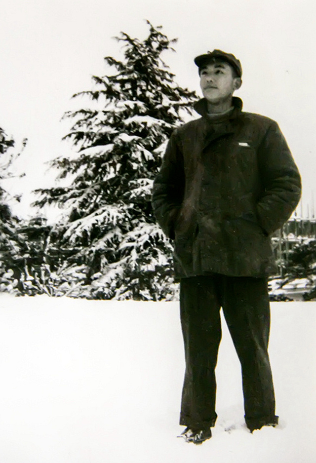 图片2:1953年冬,厉声教校友在南大北大楼雪松处.