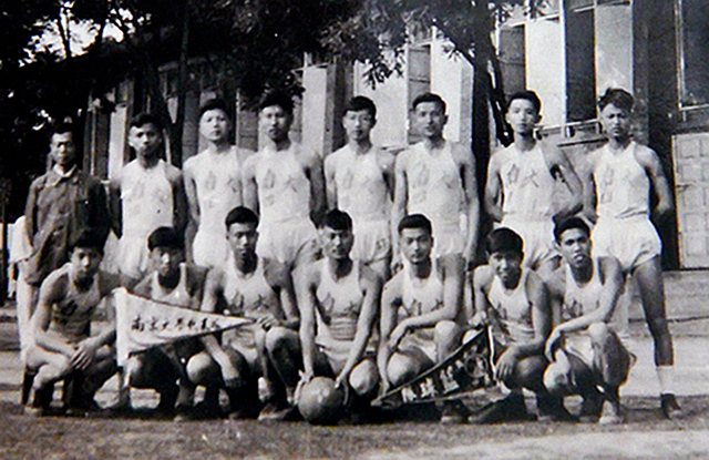图片3:1954年,南大体育馆前,南大校篮球队队员合影(后排右二为厉声教)